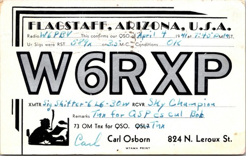 Vtg Ham Radio Cb Amateur Qsl Qso Card Postcard Flagstaff Az W6rxp 1941 Ebay